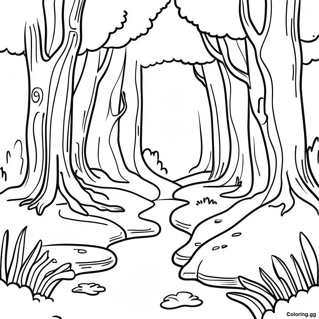 विस्तृत वन परिदृश्य रंग भरने वाला पृष्ठ का प्रिंट करने योग्य PDF डाउनलोड करें
